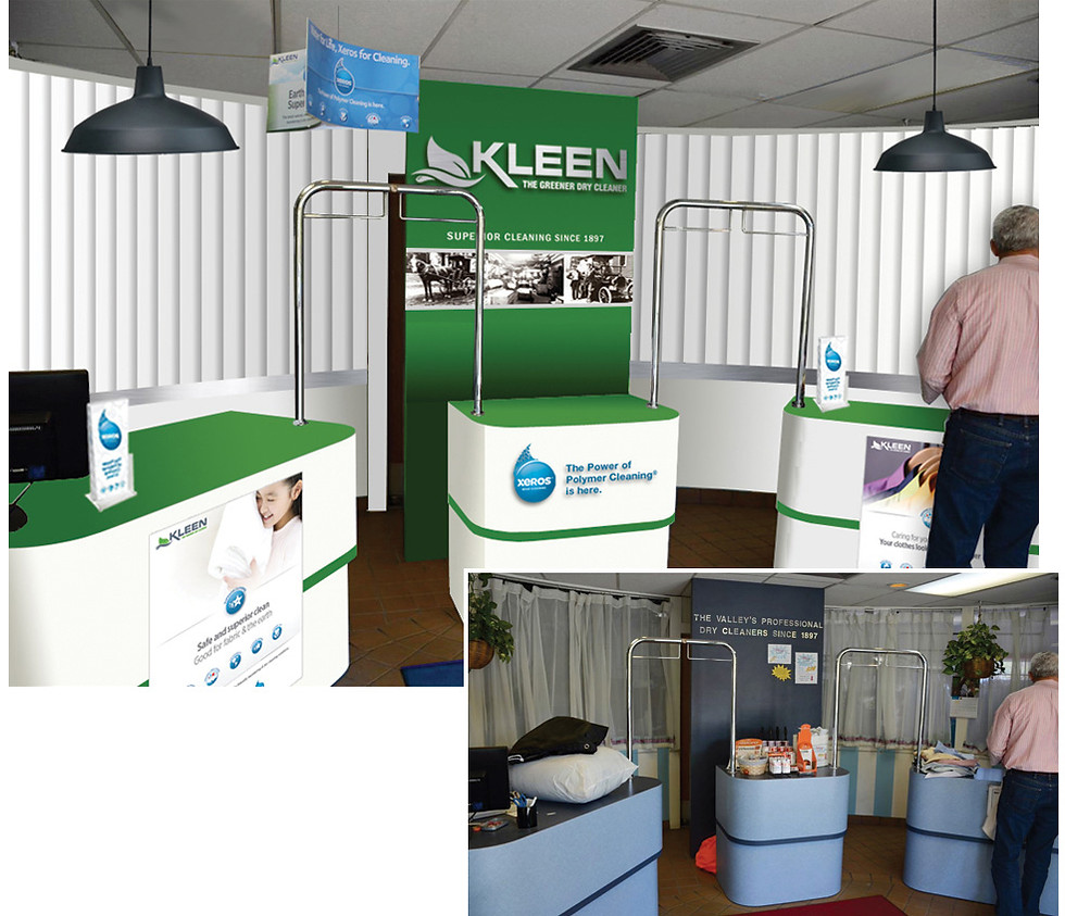 Kleen is a retail dry cleaning business located in New Hampshire's Upper Valley. The company requested a refresh of their entire brand identity system. They hired me to give them a new look that would reflect their transition to environmentally-friendly dry cleaning solutions. One requirement was to keep their existing logo font – as it's been an icon in the community for over 100 years. Otherwise, I was able to add design elements, colors and a new tagline to convey their "greener" approach to cleaning.